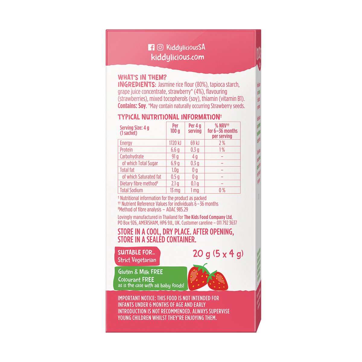 Free from: Preservatives, Artificial flavours & colourants, Gluten and Milk.